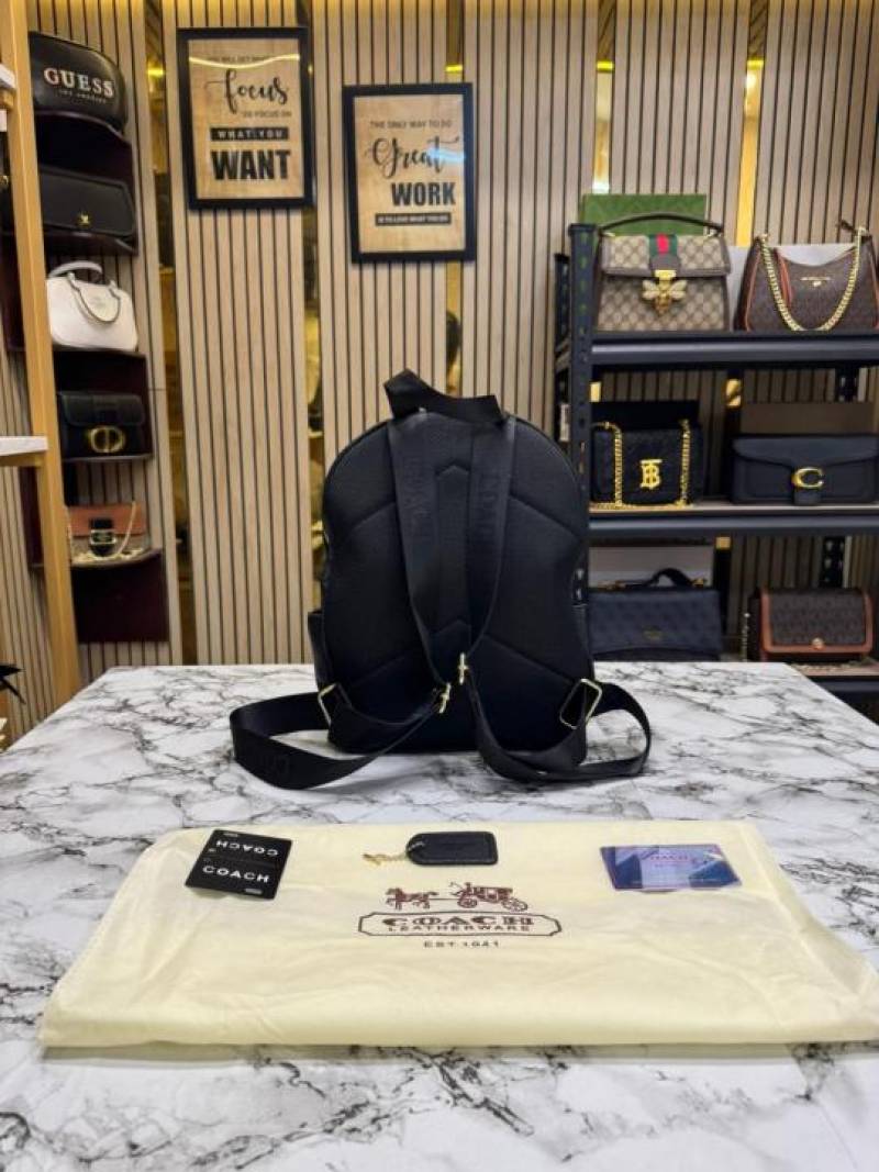 COAC_H LEATHER COURT WITH DUST BAG PREMIUM QUALITY BAGPACK [BLACK BLACK]
