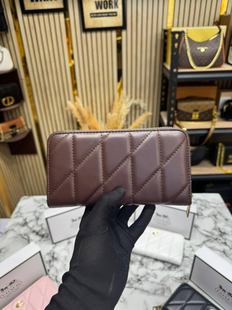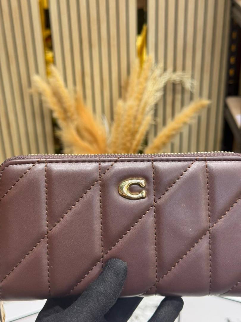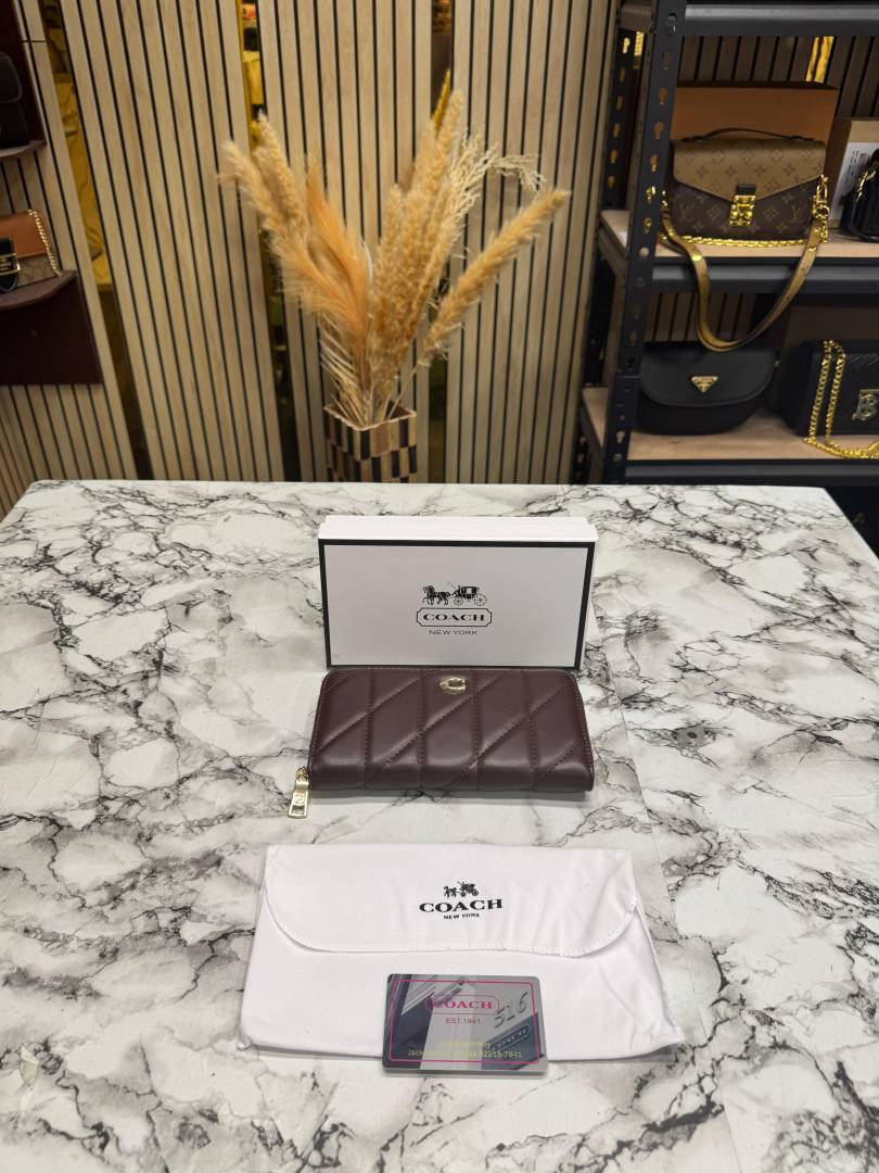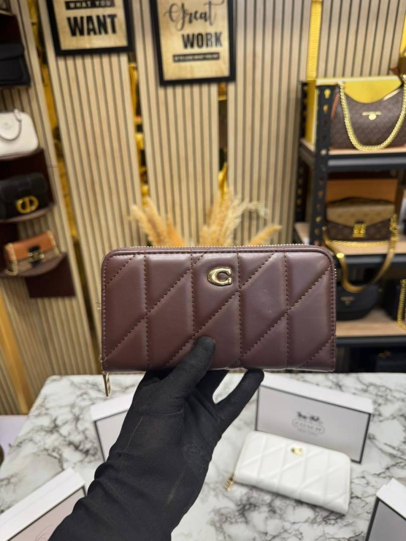 Coac_h Quilted Zipper Premium Wallet Includes Card Box And Dust Bag (CD003-Burgendy)