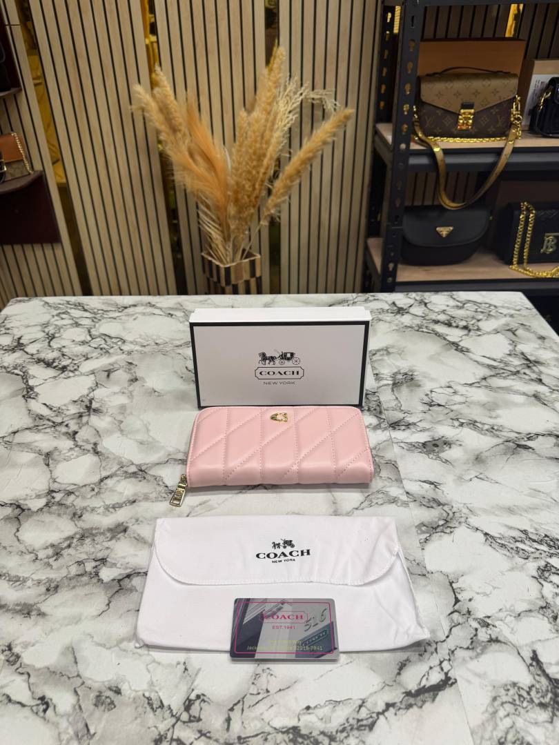 Coac_h Quilted Zipper Premium Wallet Includes Card Box And Dust Bag (CD003-Pink)