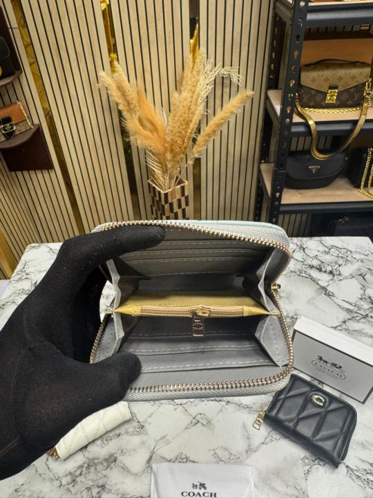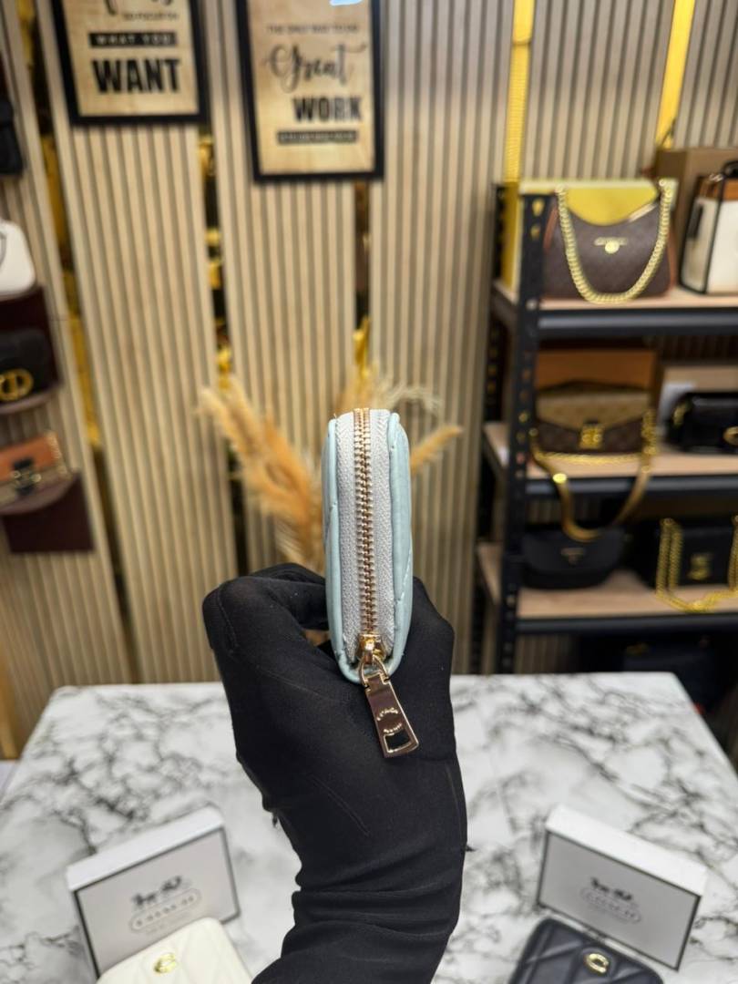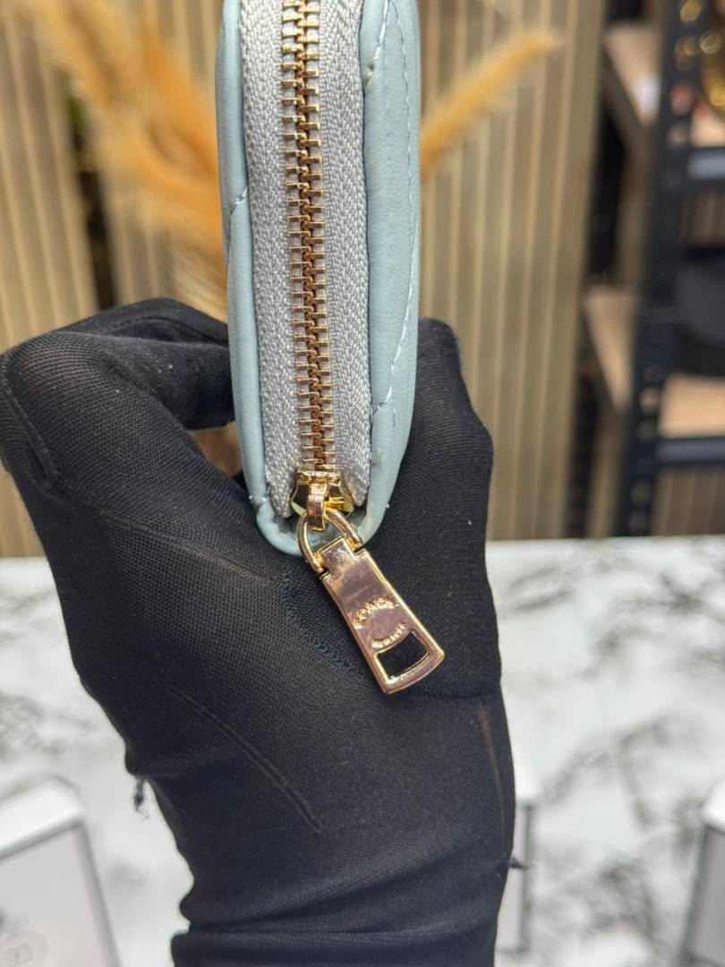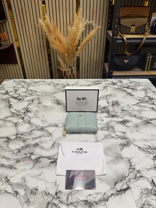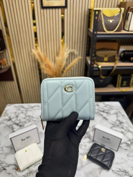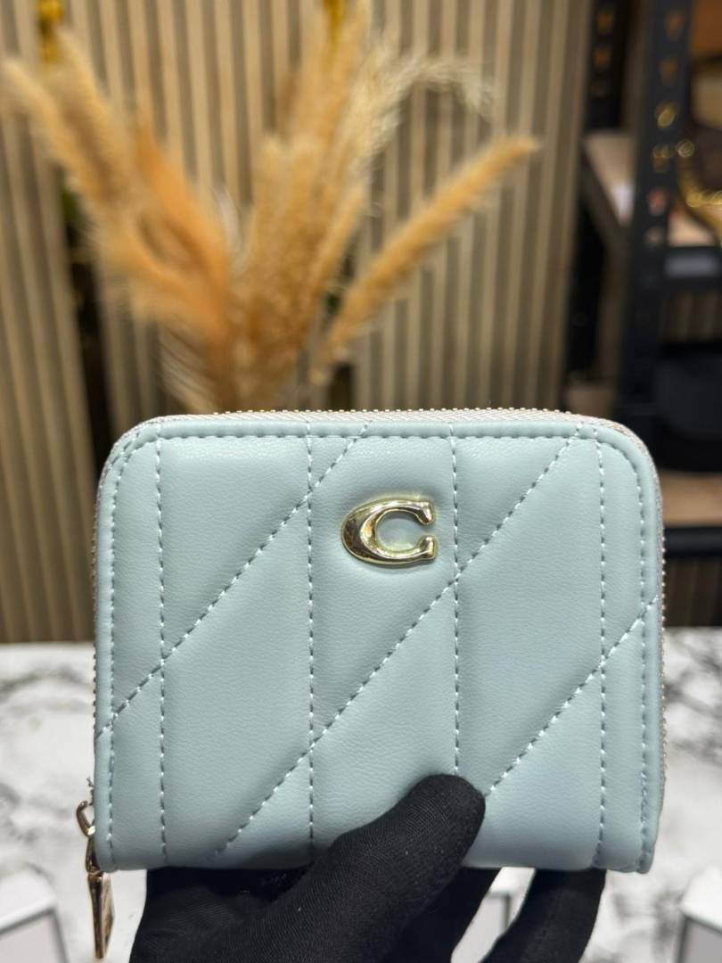 Coac_h Quilted Zipper Wallet Includes Box and Dust Bag (CXD005-Light Blue)