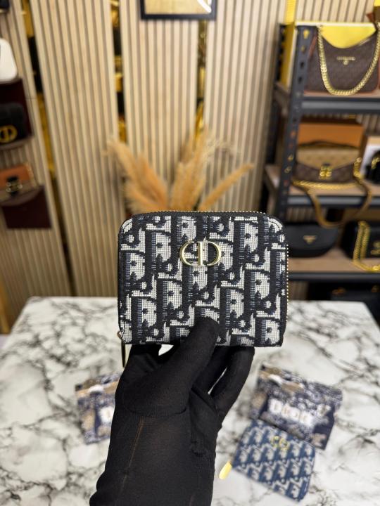 DIO_R OBLIQUE ZIP WALLET WITH GOLD CD HARDWARE INCLUDES BOX AND DUST BAG (DXD002-BLACK)