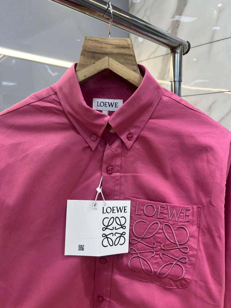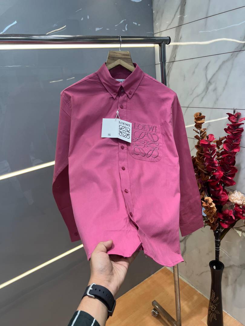 Loew e Pink Premium Oxford Cotton Fabric Shirt With Pocket Embroidered Logo custom Branded Button Tagging And Poly Bag 4046
