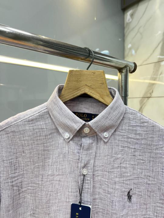 Ralp h laure n Peach Premium Imported Cotton Linen Fabric Shirt with Embroidered Logo 4025