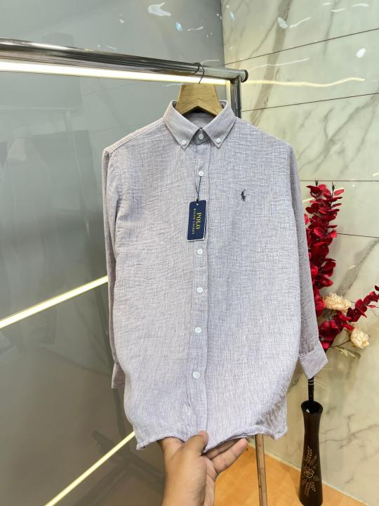 Ralp h laure n Purple Premium Imported Cotton Linen Fabric Shirt with Embroidered Logo 4031