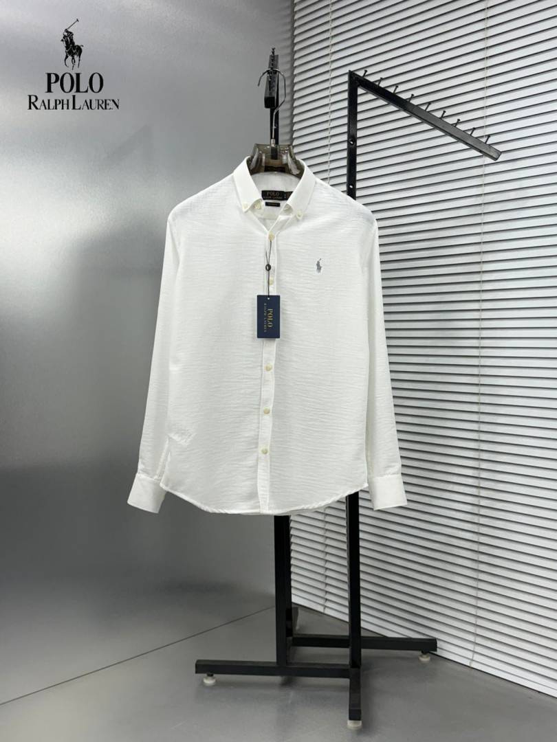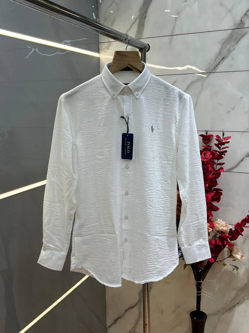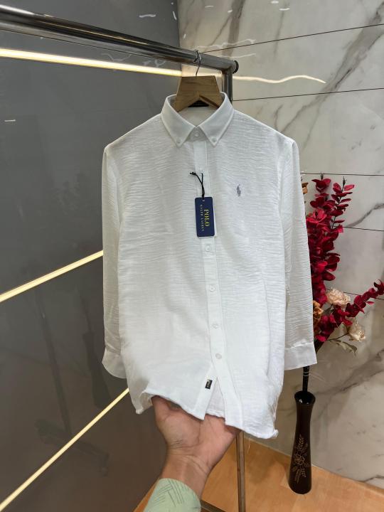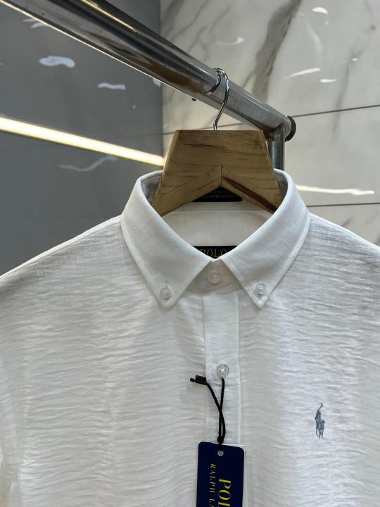 Ralp h laure n White Premium Imported Cotton Linen Fabric Shirt with Embroidered Logo 4034