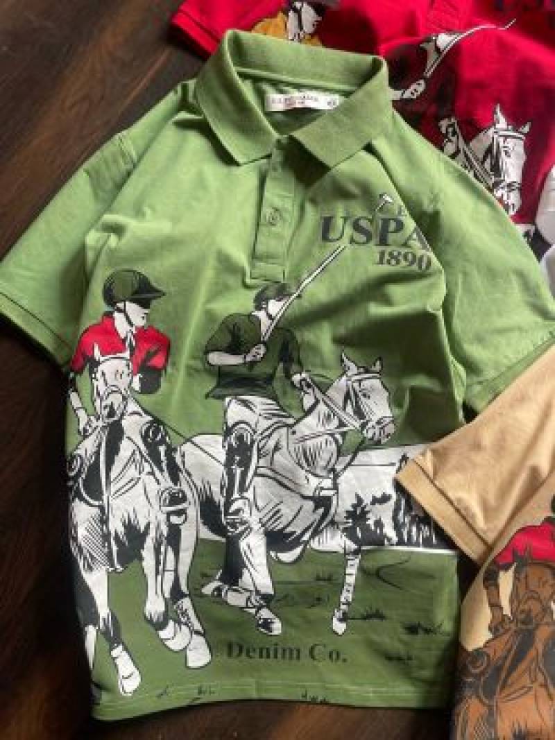 U.S.Polo Assn Green Imported Printed Polo T-shirt (1539)